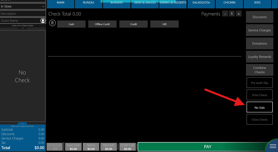 press "No Sale"